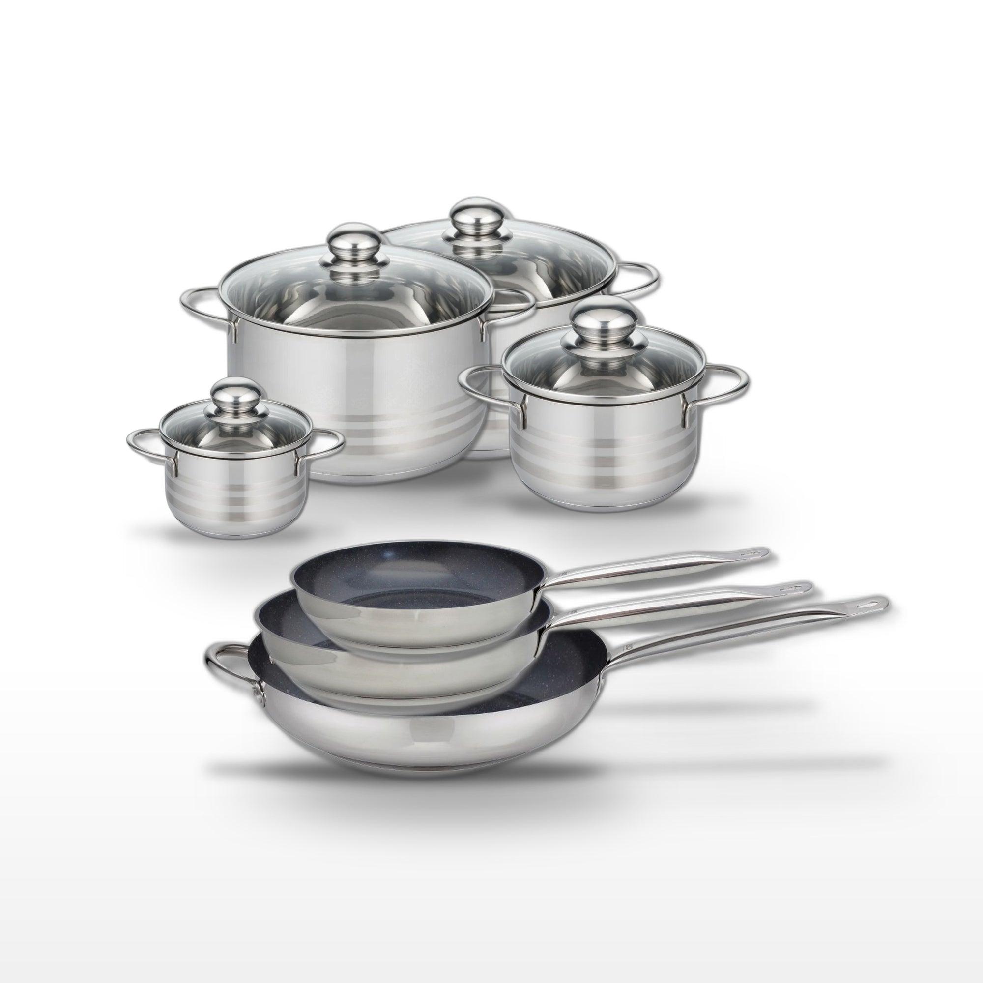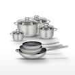 - COMPOSITION : Les poêles sont en acier inoxydable avec revêtement ELODUR® Professional, et les faitouts sont en inox de haute qualité.