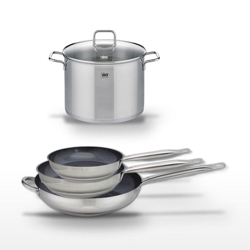 Lot de 3 Poêles céramique sans PFAS 24/28/32 cm Elo Profi Therm Platinum et Faitout 26 cm Elo Citrin