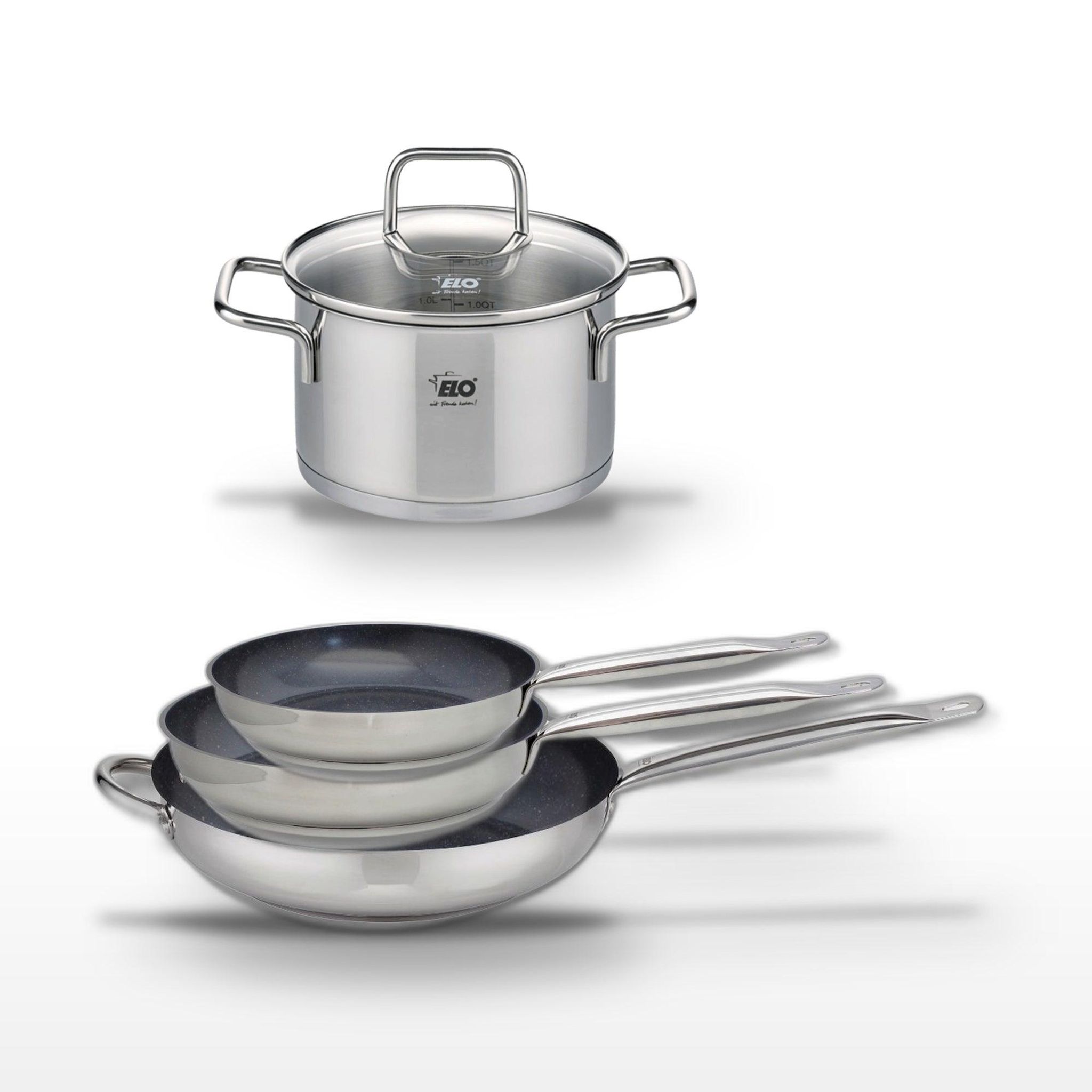 Lot de 3 Poêles céramique sans PFAS Elo Profi Therm Platinum 24/28/32 cm et Faitout 16 cm