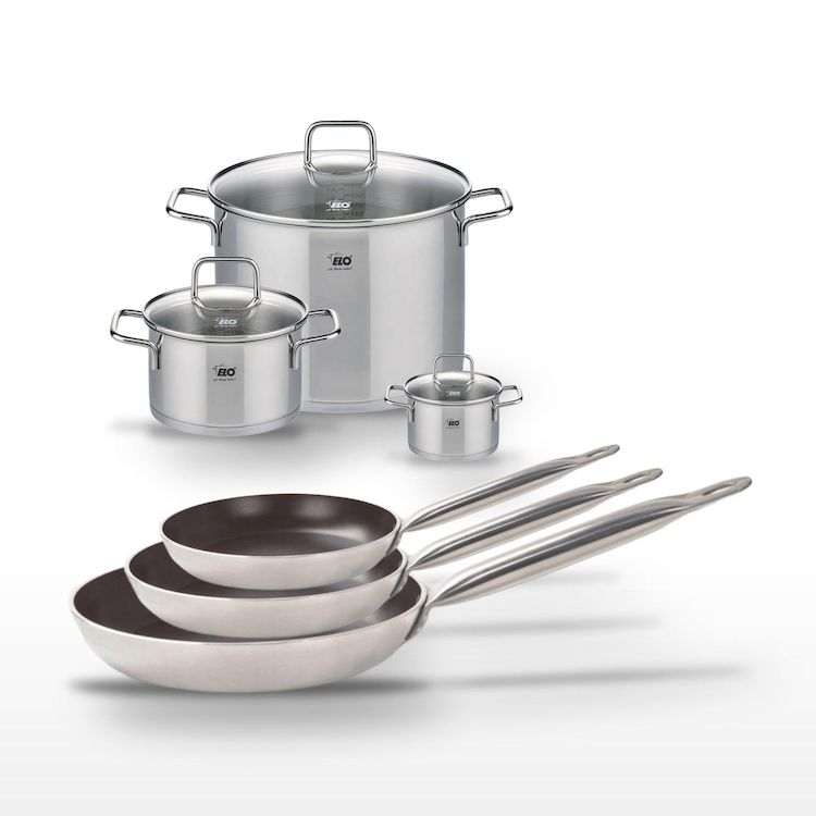- DESCRIPTION : Lot complet avec poêles céramique sans PFAS et faitouts inox Elo pour une cuisine polyvalente et saine.