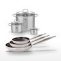 - COMPOSITION : Aluminium, Inox pour les poêles, Acier inoxydable, Verre pour les faitouts.