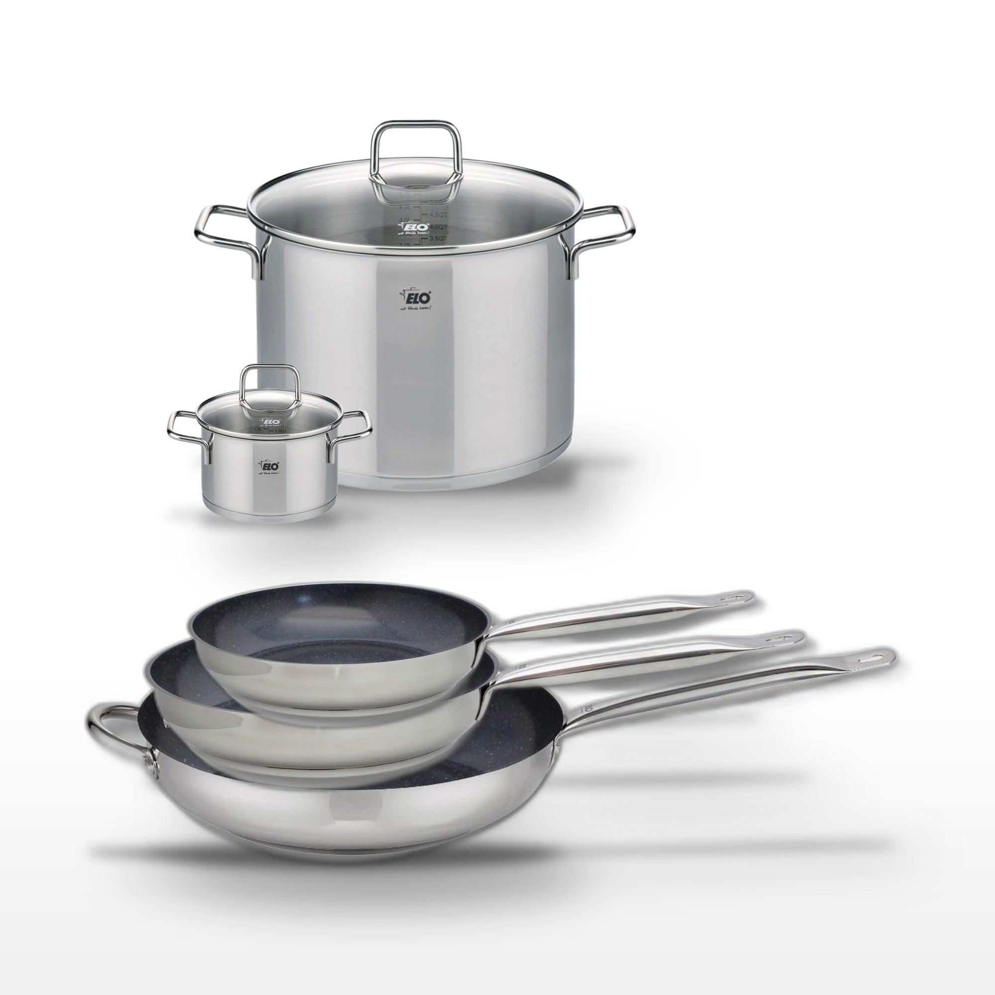 Lot de 3 Poêles Elo Profi Therm Platinum 24/28/32 cm et 2 Faitouts Elo Citrin