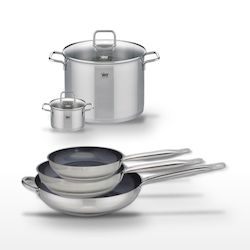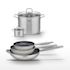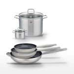 - COMPOSITION : COMPOSITION : Acier inoxydable 18/10 pour les poêles et faitouts, avec revêtements sans PFAS et couvercles en verre pour les faitouts.