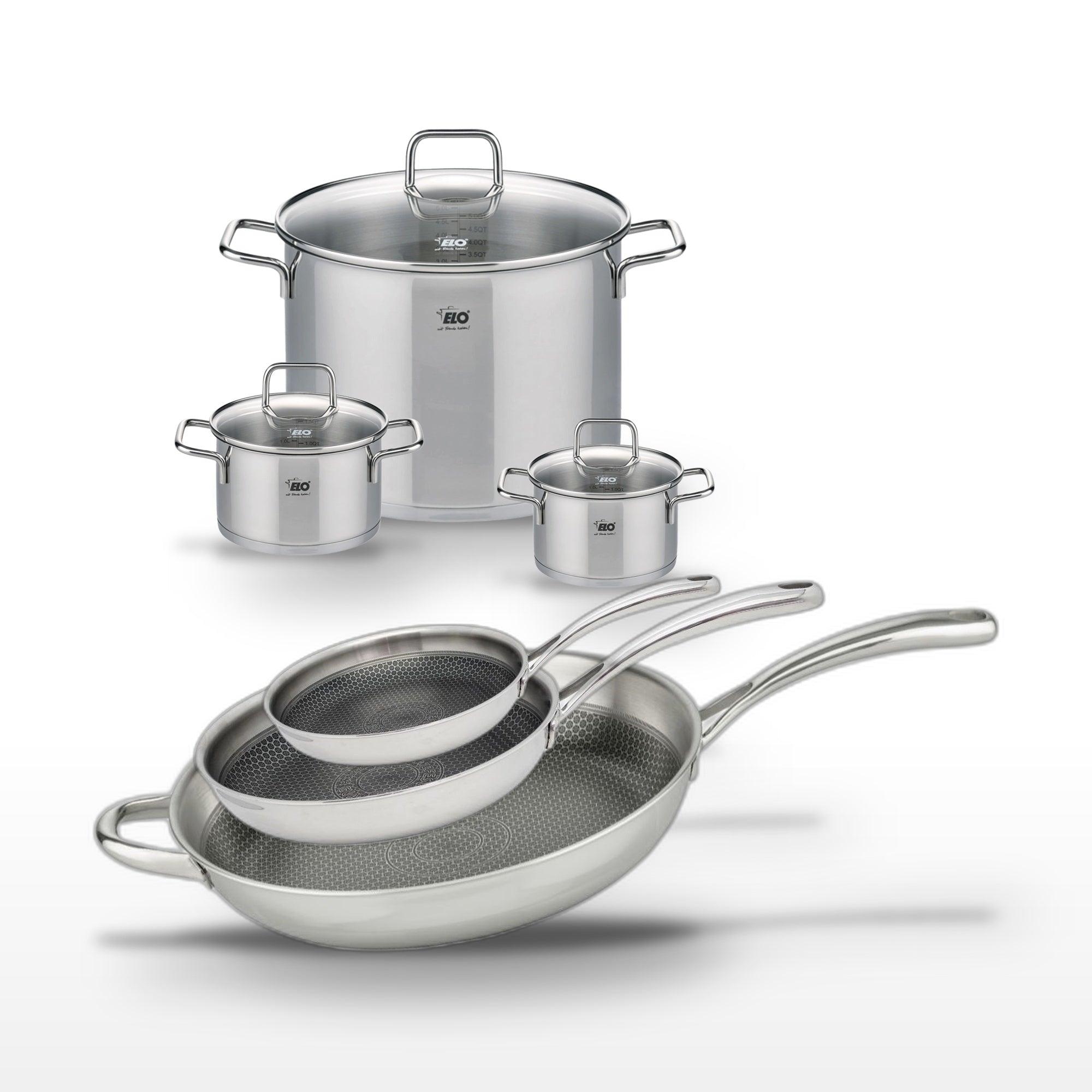 - DESCRIPTION : Ce lot Elo combine innovation et qualité avec 3 poêles et 3 faitouts en inox, garantissant des performances culinaires exceptionnelles.
