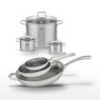 - COMPOSITION : Poêles et faitouts en acier inoxydable 18/10, avec noyau aluminium pour une répartition uniforme de la chaleur.