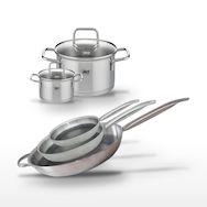 - COMPOSITION : COMPOSITION : Acier inoxydable 18/10, aluminium, revêtement antiadhésif ELODUR® Select sans PFAS, verre pour les couvercles.