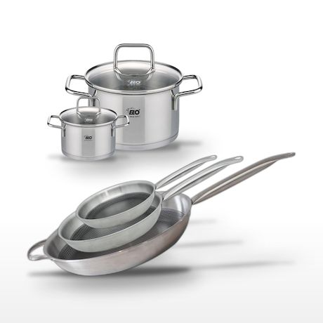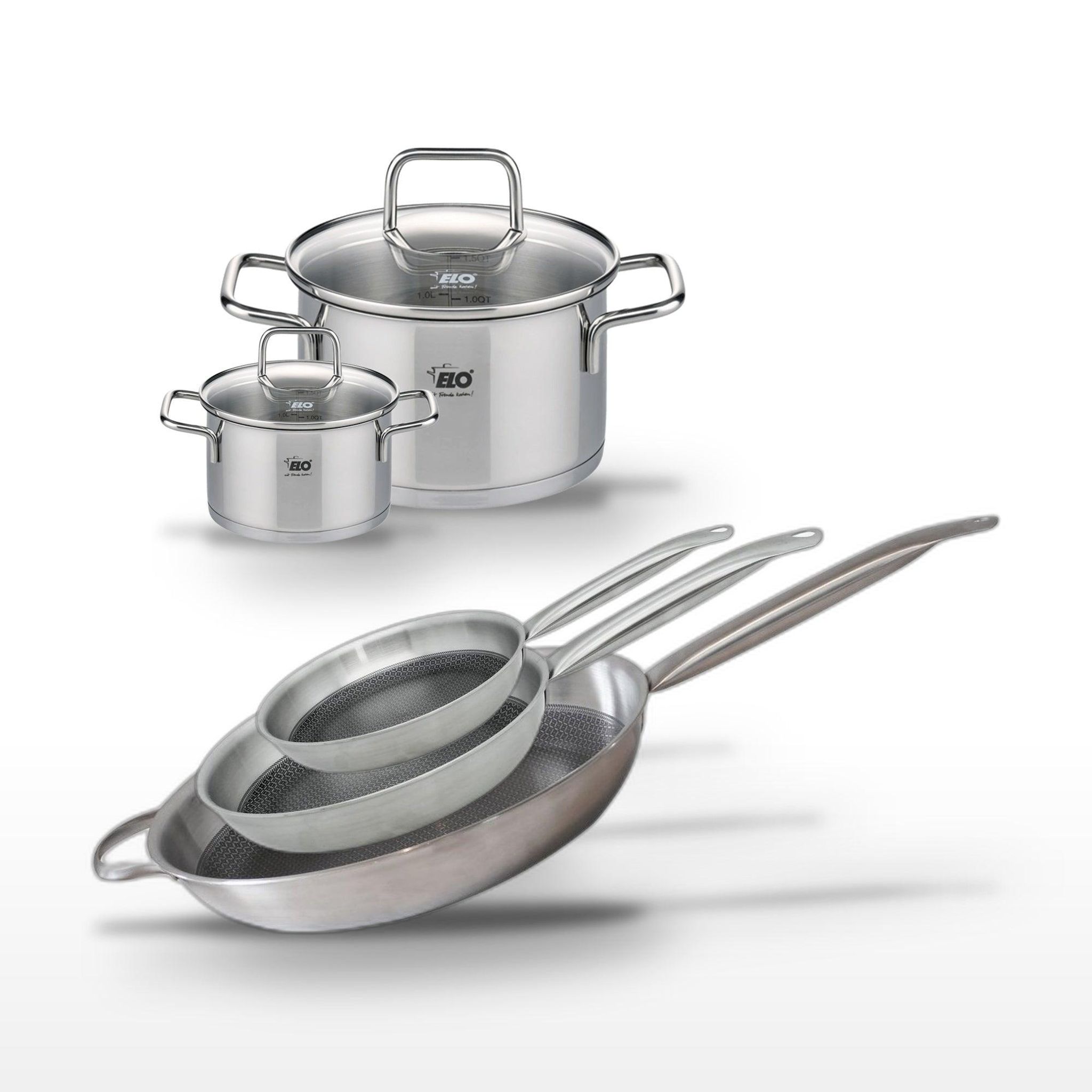 Lot de 3 Poêles Elo Relief Solution 24/28/32 cm et 2 Faitouts Elo Citrin 12/20 cm
