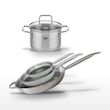 Lot de 3 Poêles en inox 24/28/32 cm Elo Relief Solution avec Faitout 14 cm