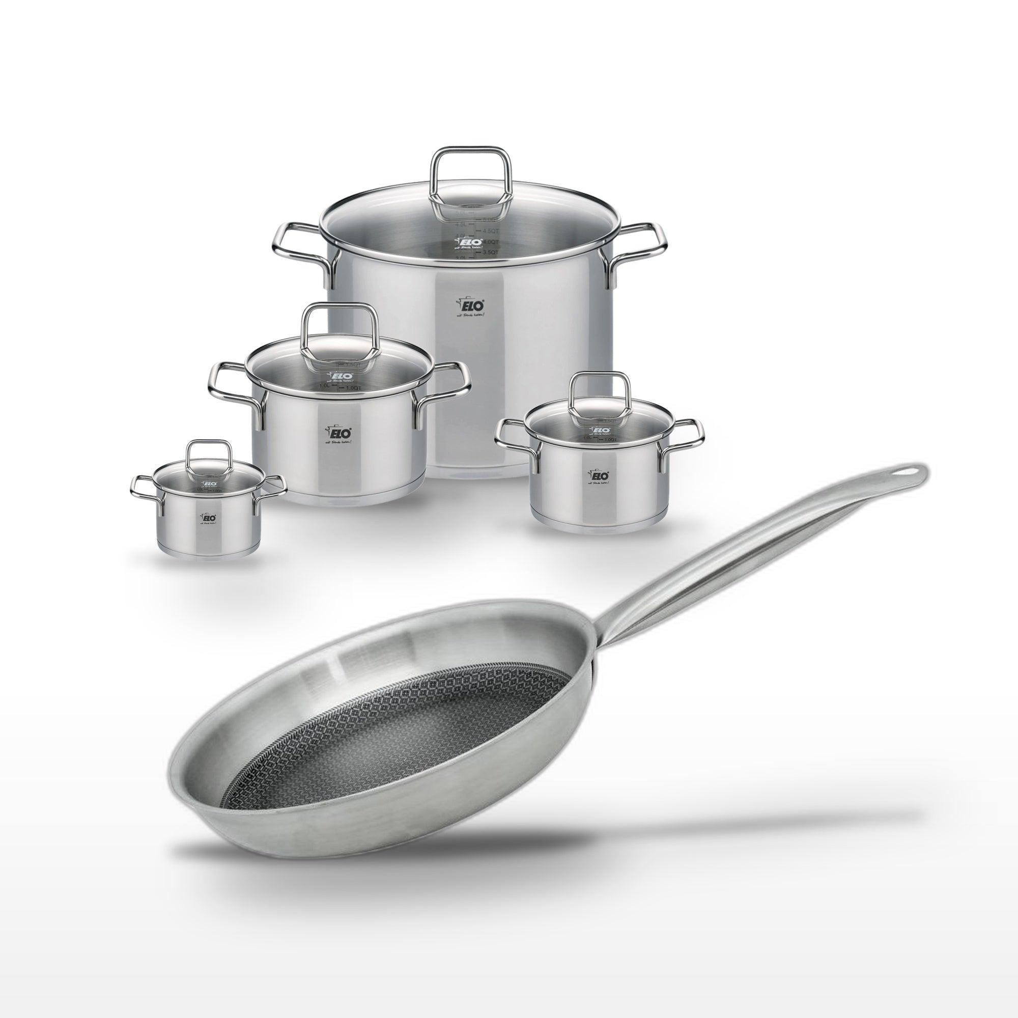 Lot de 4 Faitouts Elo Citrin & 1 Poêle 24cm Elo Relief Solution