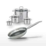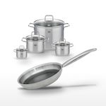 - COMPOSITION : Faitouts en acier inoxydable et verre, poêle en acier inoxydable 18/10 avec aluminium et revêtement antiadhésif minéral.