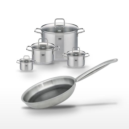- DESCRIPTION : Ce lot Elo comprend quatre faitouts en inox de la collection Citrin et une poêle 24 cm Relief Solution. Idéaux pour tous types de feux, ces ustensiles garantissent une cuisson homogène et économe en énergie.