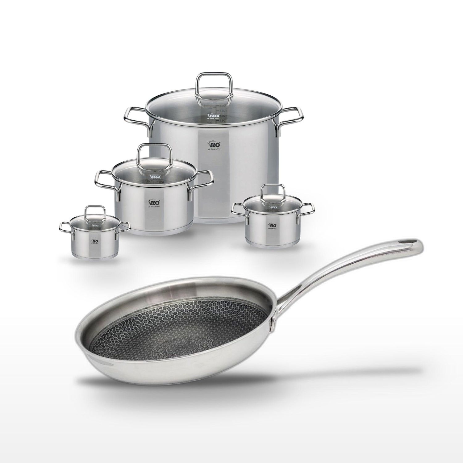 - DESCRIPTION : DESCRIPTION : L'ensemble Elo Relief Evolution se compose de quatre faitouts et une poêle, alliant design élégant et performance de cuisson.