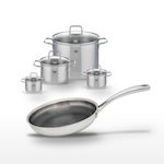 - COMPOSITION : COMPOSITION : Acier inoxydable de haute qualité pour les faitouts et poêle, avec couvercles en verre.