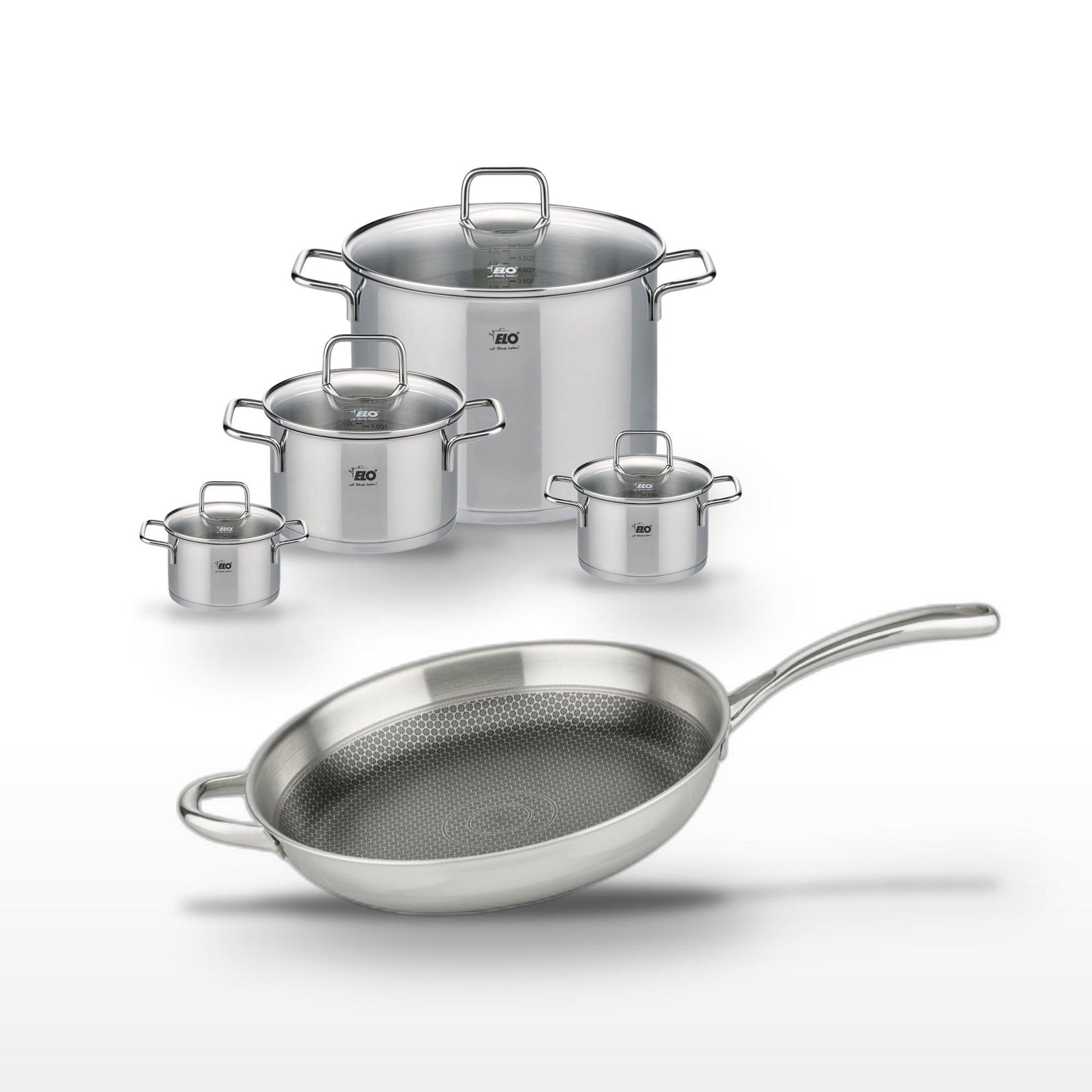 - COMPOSITION : Acier inoxydable de haute qualité, fond capsulé pour les faitouts, revêtement ELODUR® Professional pour la poêle.