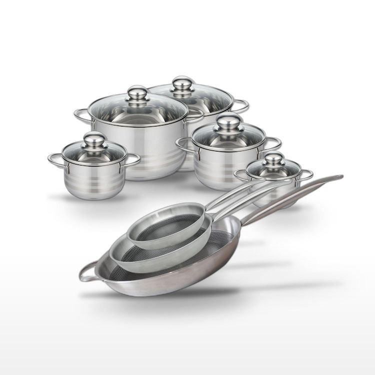- DESCRIPTION : DESCRIPTION : Ensemble de faitouts et poêles Elo Relief Solution en acier inoxydable, pour une cuisine saine et performante.