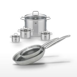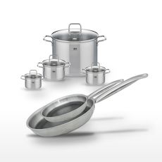 - COMPOSITION : Acier inoxydable 18/10, aluminium et verre pour les faitouts, revêtement antiadhésif ELODUR® Select pour les poêles.