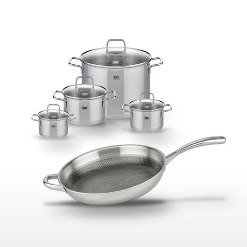 Lot de 4 Faitouts en inox Elo Relief Evolution avec Poêle 32cm