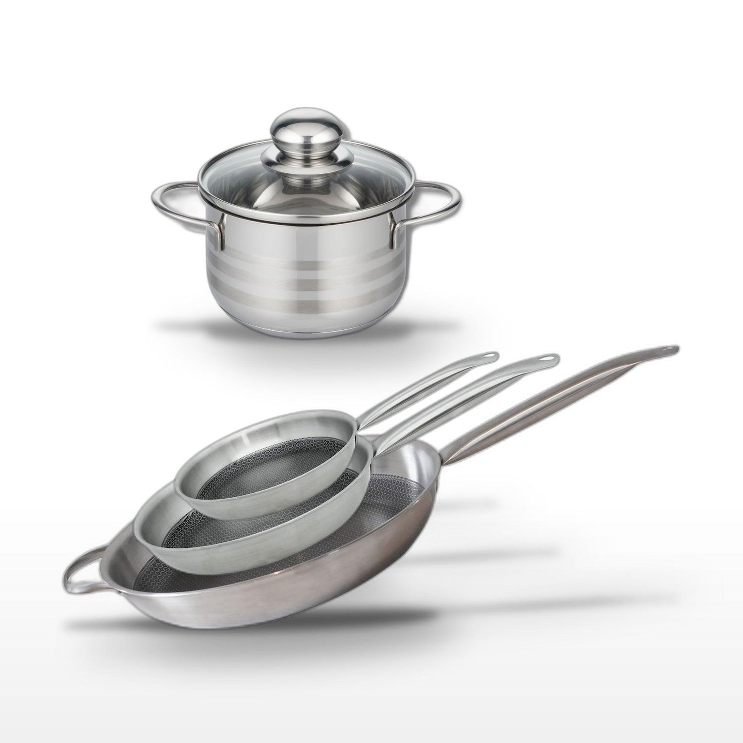 Lot de 4 Poêles Elo Relief Solution 24/28/32 cm avec Faitout 12 cm