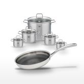 - DIMENSIONS : Faitouts de 12 cm à 26 cm, poêle de 28 cm, offrant une capacité de 0,6 à 9,5 litres.