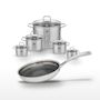 - PETIT + : Le revêtement antiadhésif ELODUR® de la poêle garantit une cuisson sans accrocs, tandis que les faitouts préservent les vitamines grâce à leur fond capsulé.