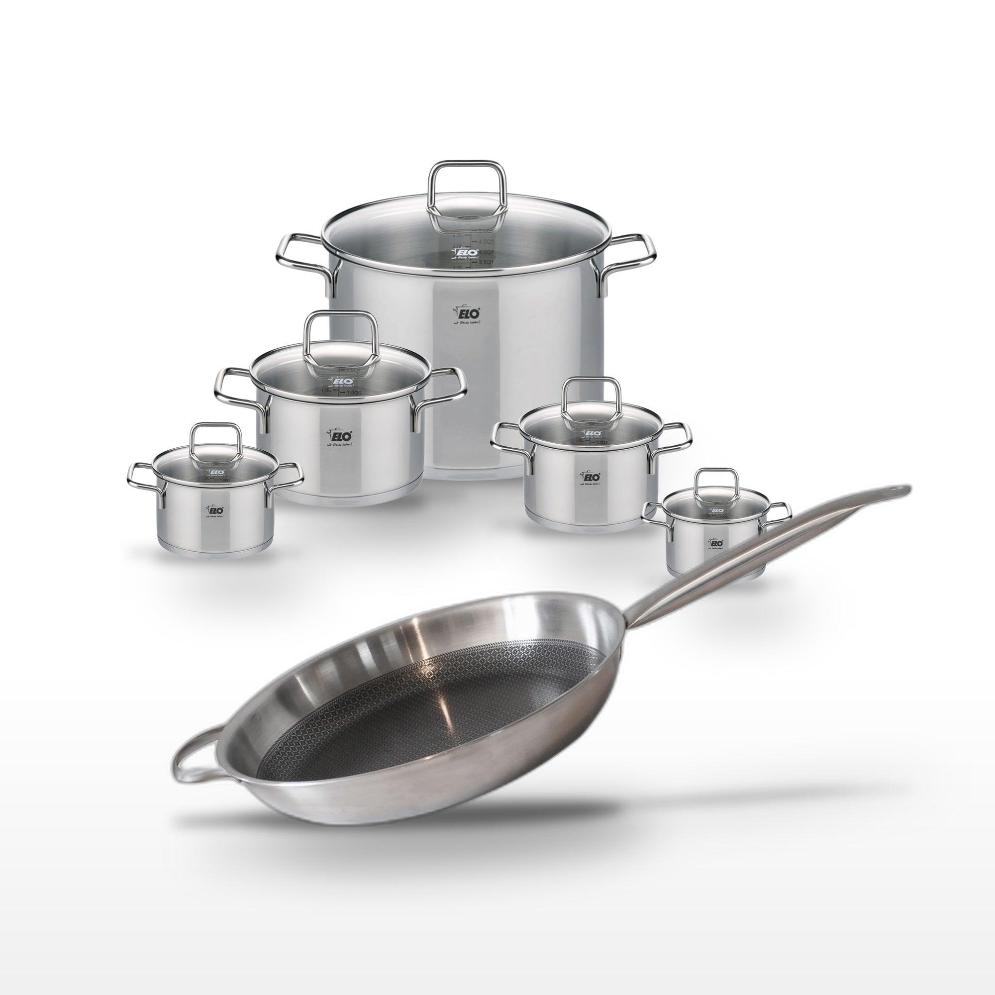- DESCRIPTION : L'ensemble Elo Relief Solution offre 5 faitouts et une poêle, tous en acier inoxydable, pour une cuisson parfaite.