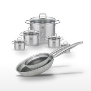 - COMPOSITION : COMPOSITION : Acier inoxydable pour les faitouts et structure Triply pour les poêles, incluant acier inoxydable 18/10, aluminium et revêtement ELODUR® Select.