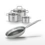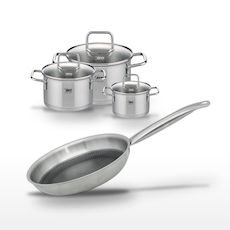 - COMPOSITION : COMPOSITION : Acier inoxydable et verre pour les faitouts, acier inoxydable 18/10 et aluminium pour la poêle.