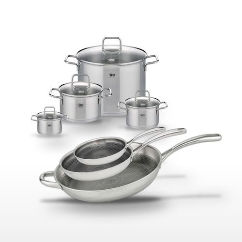 - COMPOSITION : Acier inoxydable 18/10 avec revêtement ELODUR® Professional pour les poêles, fond capsulé pour les faitouts.