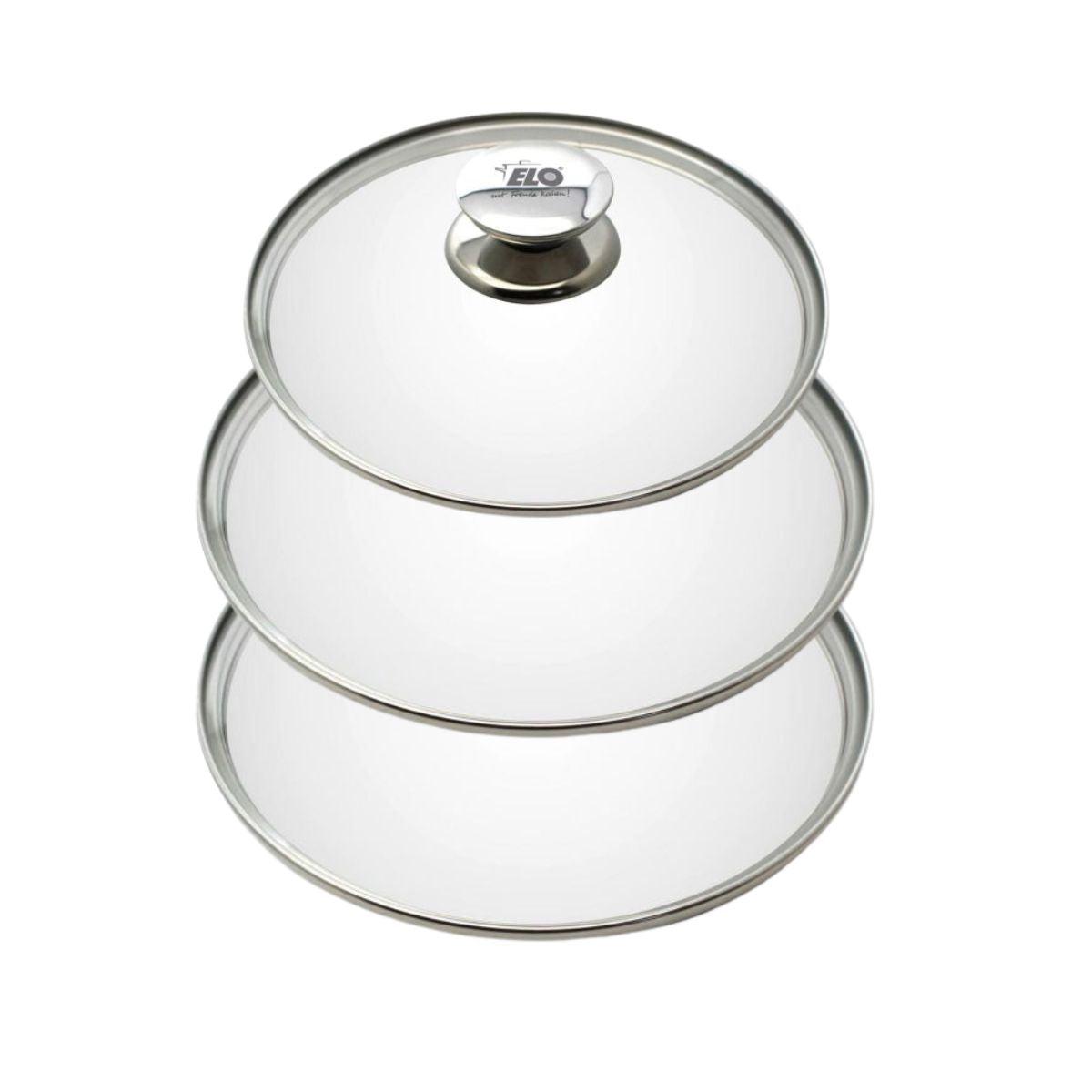 • DIMENSIONS : Ce set de couvercles pour poêles et casseroles comprend 3 tailles, 16 cm, 20cm et 24 cm de diamètre, qui s'adaptent à nos ustensiles Elo comme à tous les produits standard du commerce