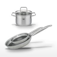 - DESCRIPTION : DESCRIPTION : Ce lot Elo Relief Solution inclut un faitout de 16 cm et deux poêles de 24 et 28 cm, tous en acier inoxydable 18/10 avec un revêtement antiadhésif sans PFAS.