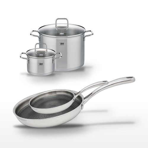 - COMPOSITION : Fabriqué en acier inoxydable de haute qualité, avec un fond capsulé pour les faitouts et un revêtement ELODUR® pour les poêles.