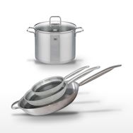 Le lot Elo Relief Solution est un ensemble de haute qualité conçu pour répondre aux besoins des professionnels de la cuisine comme aux amateurs passionnés. Composé d'un faitout en inox de 26 cm et de trois poêles de 24, 28, et 32 cm, cet ensemble offre une polyvalence exceptionnelle. Fabriquées en acier inoxydable 18/10, les pièces principales garantissent une résistance à la corrosion et une durabilité accrue. Le faitout est idéal pour les cuissons longues, préservant les arômes et les nutriments grâce à son fond capsulé qui assure une répartition homogène de la chaleur. Les poêles, quant à elles, sont équipées d'un revêtement antiadhésif ELODUR® Select, permettant une cuisson saine et une réduction de l'utilisation de matières grasses. Le design moderne et ergonomique, avec des poignées creuses pour un confort optimal, facilite la manipulation et le service. Chaque élément est compatible avec tous types de feux, y compris l'induction, et passe au four jusqu'à 240°C, offrant ainsi une flexibilité maximale pour vos préparations culinaires. L'entretien est simplifié grâce à la possibilité de lavage au lave-vaisselle, tandis que le revêtement antiadhésif facilite le nettoyage à la main. Choisir le lot Elo Relief Solution, c'est opter pour l'excellence et la fiabilité en cuisine.