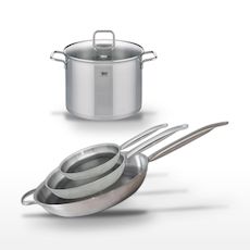 - UTILISATION : Compatibles tous feux, y compris induction. Poêles passent au four jusqu'à 240°C.