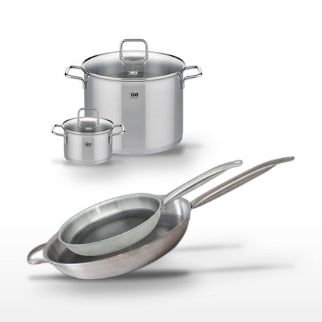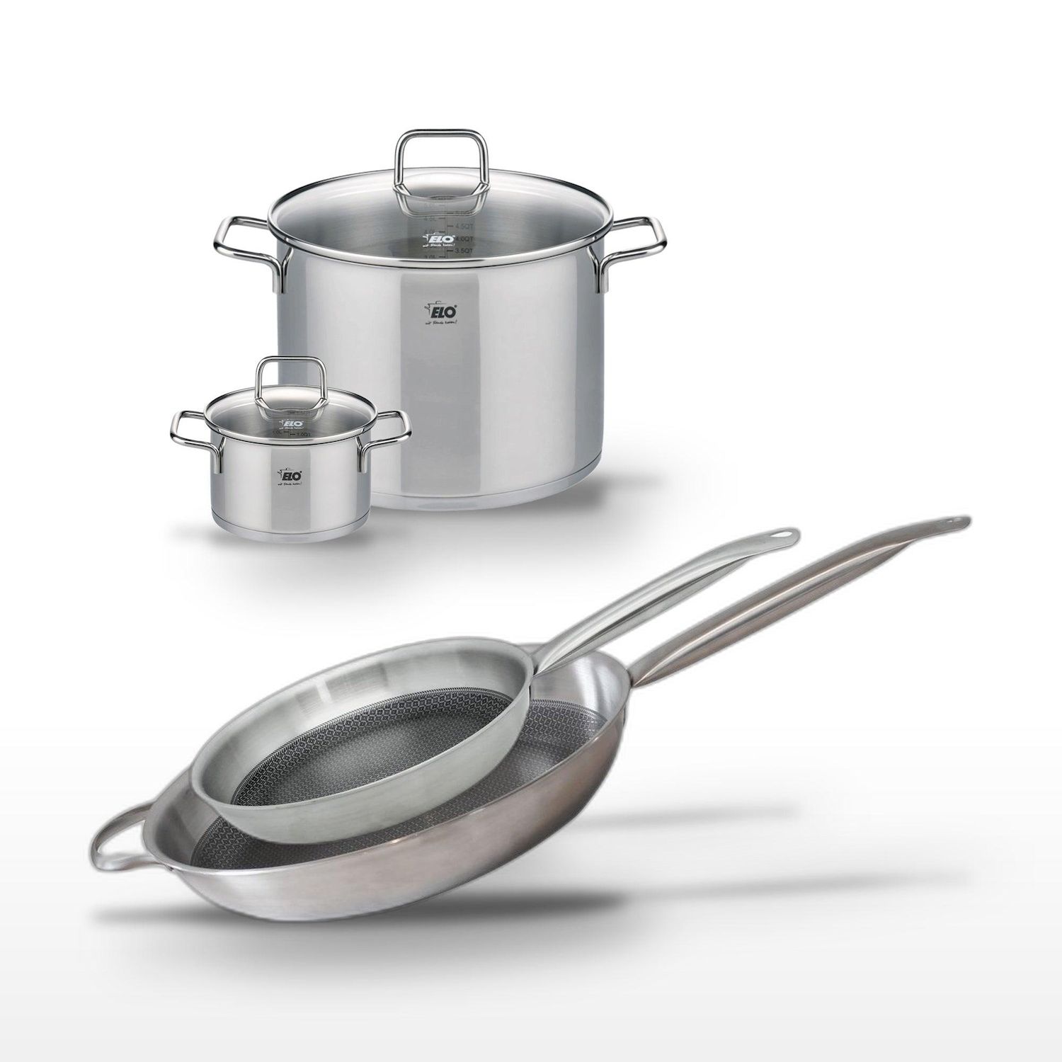- DESCRIPTION : Le lot Elo Relief Solution inclut deux faitouts et deux poêles en acier inoxydable 18/10, offrant une cuisson homogène et une compatibilité tous feux, y compris induction.