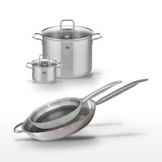 - PETIT + : Le revêtement antiadhésif ELODUR® Select sans PFAS des poêles assure un nettoyage facile et une cuisson saine, tandis que les faitouts préservent les vitamines grâce à leur fond capsulé.