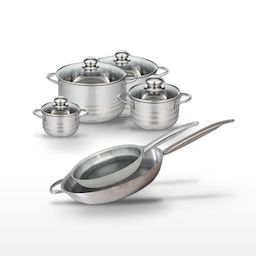 - COMPOSITION : Acier inoxydable de haute qualité, revêtement antiadhésif sans PFAS, couvercles en verre résistant aux chocs.