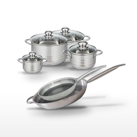 - DESCRIPTION : Ensemble de faitouts et poêles en acier inoxydable Elo Relief Solution, pour une cuisine saine et performante.