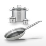 - DESCRIPTION : DESCRIPTION : Ensemble Elo Relief Solution avec trois faitouts et une poêle, tous en acier inoxydable pour une cuisson optimale.