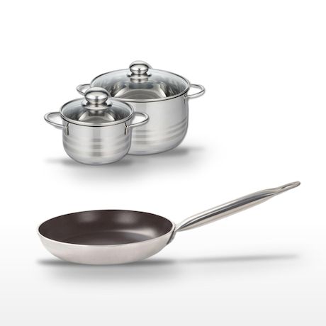 - COMPOSITION : COMPOSITION : Aluminium et inox pour la poêle, acier inoxydable pour les faitouts. Tous garantis sans PFAS pour une cuisine saine.