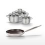 - COMPOSITION : COMPOSITION : Poêle en aluminium avec poignée inox, faitouts en acier inoxydable de haute qualité.