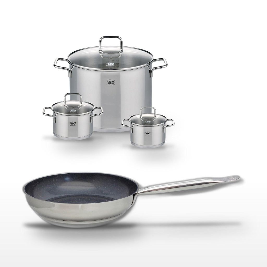 - DESCRIPTION : DESCRIPTION : L'ensemble Elo Profi Therm Platinum inclut une poêle céramique 24 cm et trois faitouts en inox pour une cuisine saine et polyvalente.