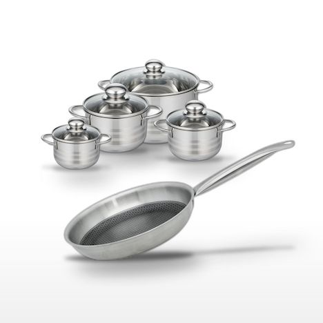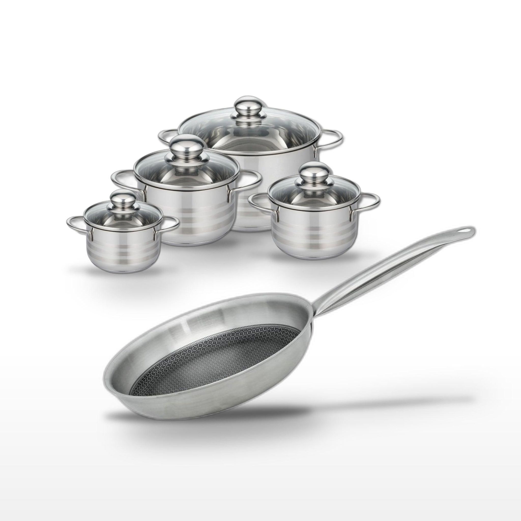 - DESCRIPTION : Le lot Elo Relief Solution inclut une poêle 24 cm et quatre faitouts en acier inoxydable, idéaux pour une cuisson homogène et saine.
