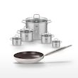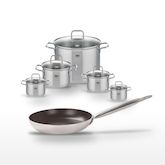 - COMPOSITION : Poêle en aluminium avec revêtement céramique sans PFAS et faitouts en acier inoxydable avec couvercles en verre.