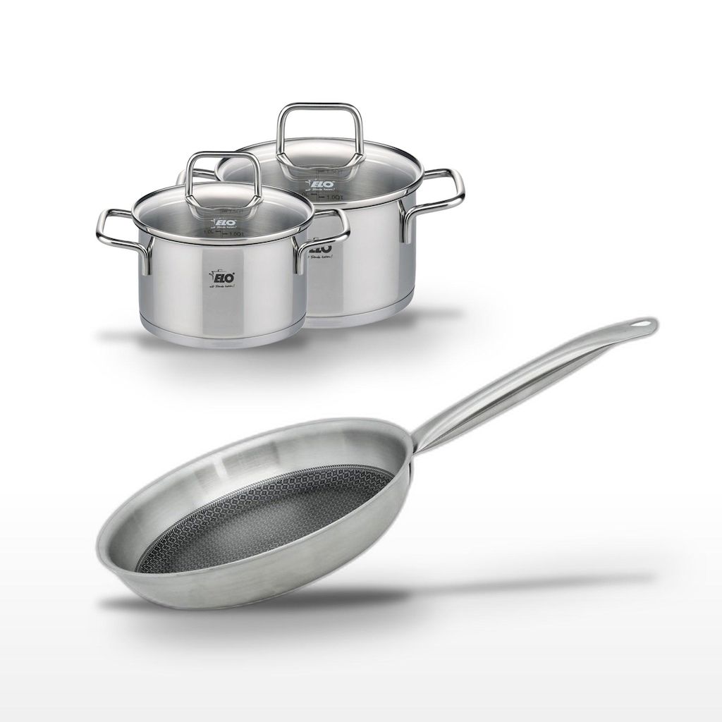 Lot Poêle 24 cm Elo Relief Solution & 2 Faitouts 16/14 cm