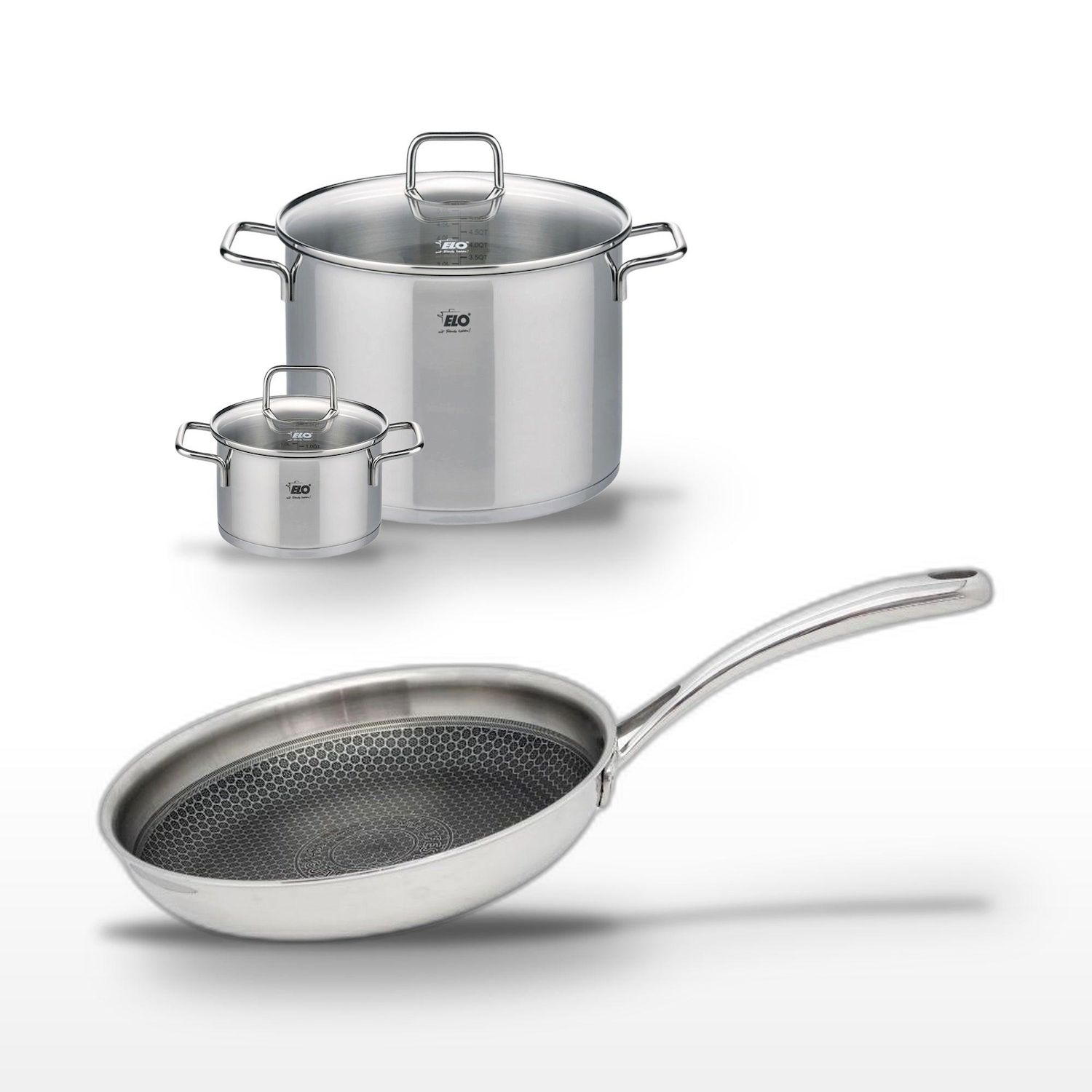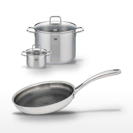 - DESCRIPTION : Lot Elo Relief Evolution avec poêle 24 cm et faitouts 16/26 cm. Acier inoxydable pour cuisson uniforme.
