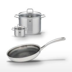 Le lot Elo Relief Evolution est conçu pour répondre aux exigences des professionnels de la cuisine. Composé d'une poêle de 24 cm et de deux faitouts de 16 cm et 26 cm, ce lot offre une polyvalence inégalée pour toutes vos préparations culinaires. La poêle, dotée d'un revêtement antiadhésif ELODUR® Professional, permet une cuisson sans accroche et une résistance accrue aux rayures, idéale pour des cuissons saines et croustillantes. Les faitouts, avec leur fond capsulé, assurent une répartition homogène de la chaleur et une conservation optimale des nutriments. Fabriqué en acier inoxydable 18/10, ce lot est non seulement robuste mais aussi esthétiquement élégant, s'intégrant parfaitement dans toute cuisine professionnelle. Compatible avec tous les types de feux, y compris induction, il est prêt à supporter une utilisation intensive tout en garantissant des résultats culinaires exceptionnels.