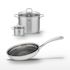 - COMPOSITION : Acier inoxydable 18/10, aluminium, verre. Poêle avec revêtement antiadhésif sans PFAS.