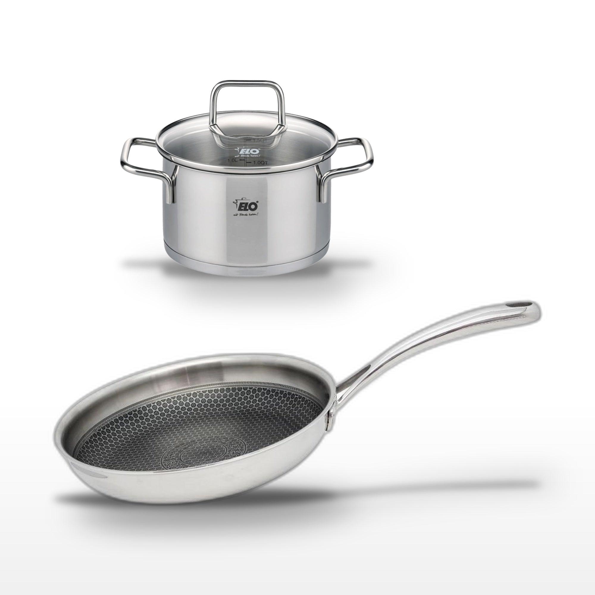 - DESCRIPTION : Profitez de la poêle 24 cm et du faitout 12 cm Elo pour une cuisine performante et élégante, conçus pour des cuissons précises et saines.