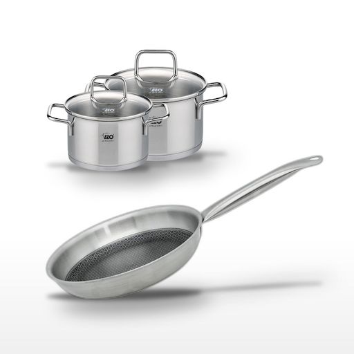 - DESCRIPTION : Profitez de cet ensemble Elo comprenant une poêle 24 cm et deux faitouts 12 cm et 14 cm. Chaque pièce est conçue pour offrir une cuisson uniforme et une durabilité exceptionnelle grâce à l'acier inoxydable.