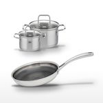 - DIMENSIONS : Poêle Ø 24cm, Faitout 16cm 1,7L, Faitout 12cm 0,6L. Idéal pour 1 à 3 personnes.